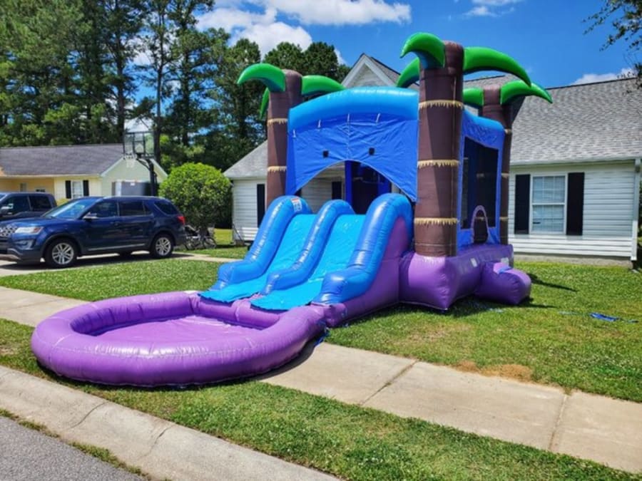Introducing our Junior Combo! This unit has a weight limit of 800 lbs with a maximum height of 5'8". This is the perfect bounce house rental for younger kids. With it being geared toward ages 3-10 years, this bounce has a nice jumping space with a basketball hoop and 2- 4.5 ft slides.