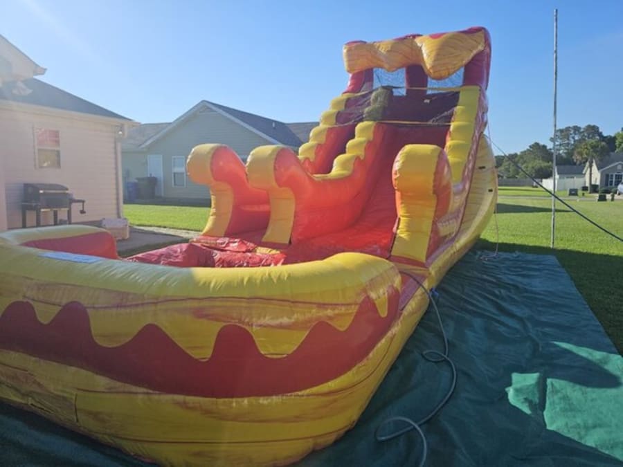 When you’re searching for Water Slide Rentals 16 ft Molten Rush Water Slide Wet/Dry in Conway, Aynor, Longs, Loris, North Myrtle Beach, Little River, Myrtle Beach, Surfside, Murrells Inlet, we’re your local party experts! Our reliable team ensures timely delivery, safe installation, and prompt pickup, so you can focus on making memories. We pride ourselves on clean, high-quality inflatables that deliver safe entertainment for every occasion.